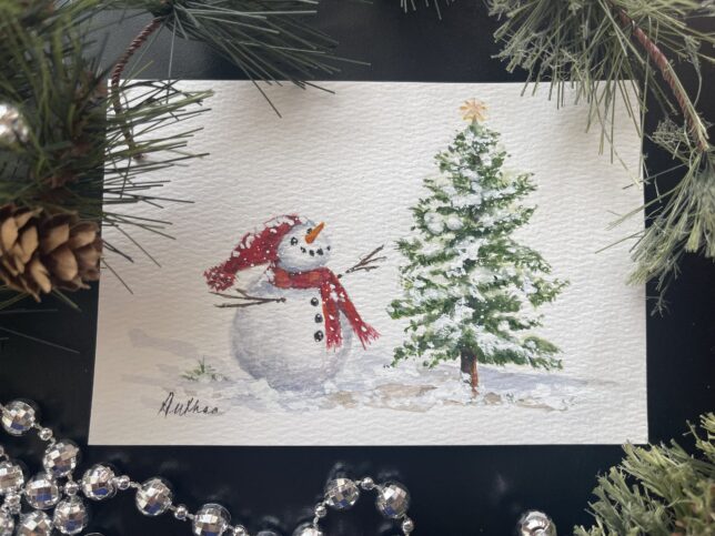 The snowman’s head was not quite as they’d left it and somehow his face was different. His eyes sparkled brighter and his smile was much bigger. His carrot nose was cheekily pointing upward, while his head was tilted back and turned ever so slightly towards the tree. Was he gazing up in wonder at the tree’s star? Yes, indeed! They couldn’t deny what they saw.
